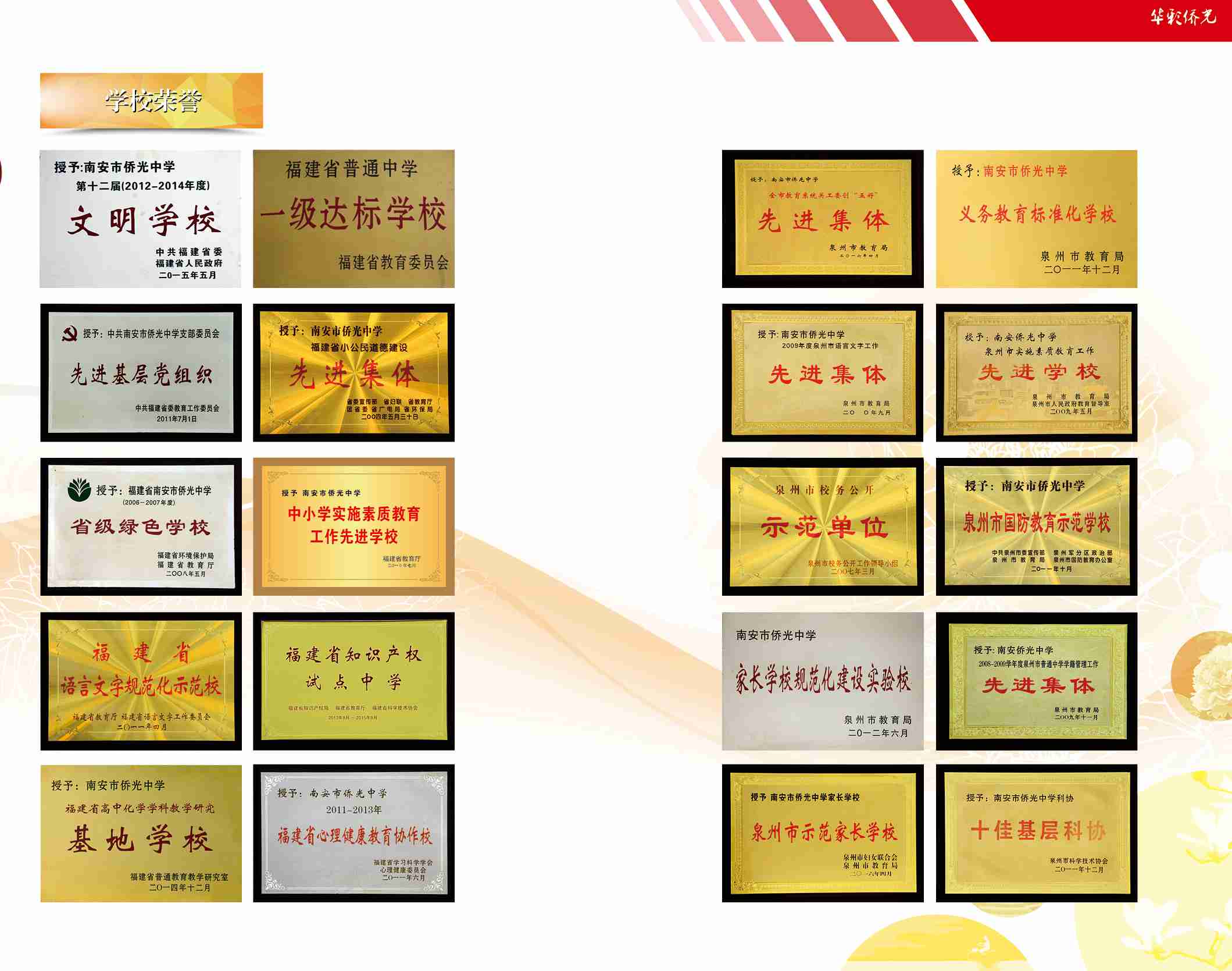 福建省南安市侨光中学坐落于叶飞将军的故乡——金淘镇,邻近省道307线和高速出入口,交通便捷。学校创建于1946年,是南安创办时间最早的两所完全中学之一。1991年10月晋升为福建省三级达标中学,1995年5月晋升为福建省二级达标中学,2002年2月晋升为福建省一级达标中....…