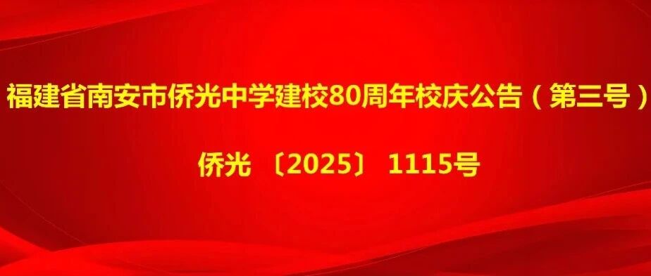 福建省南安市侨光中学建校80周年庆典活动定于2026年11月15日在牡丹山校区举行。值此建校80周年倒计时一周年之际,学校隆重举行倒计时启动暨学年度奖教奖学金颁奖仪式,现公告如下:八秩筹备有序,献礼硕果初结。校庆献礼项目历经两年建设,在各级领导、海内外侨亲校....…