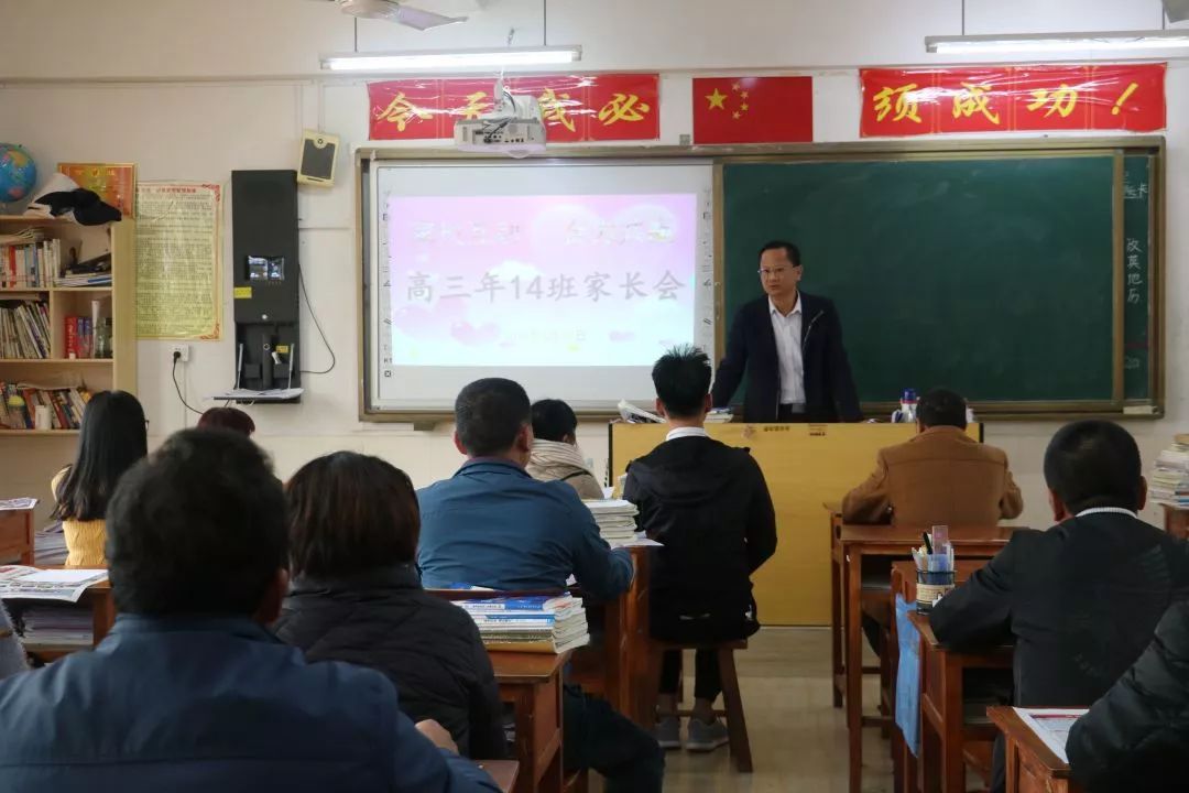 为了让家长更多地了解学校的教育教学管理制度及方法,帮助学生在高三最后阶段取得更大进步,赢得2019年高考的胜利,2月10日,我校在各班召开高三年段学生家长会。