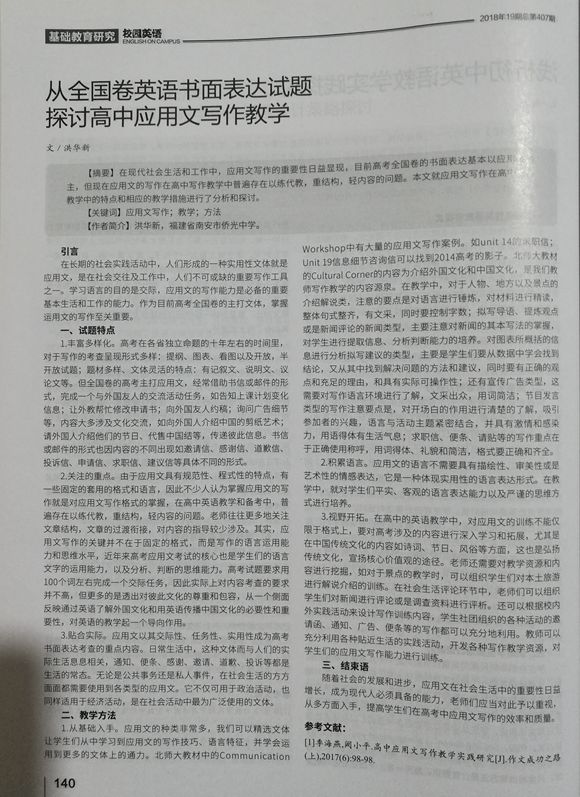 洪华新+从全国卷英语书面表达试题探讨 高中应用文写作教学
