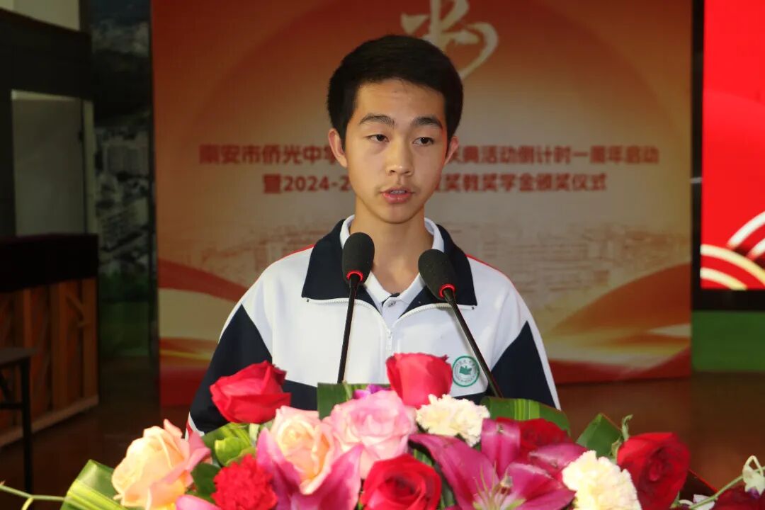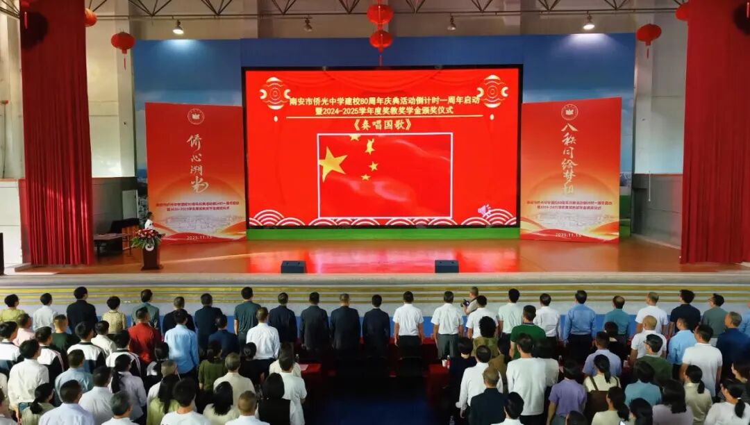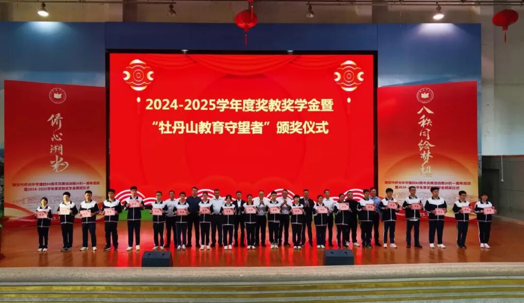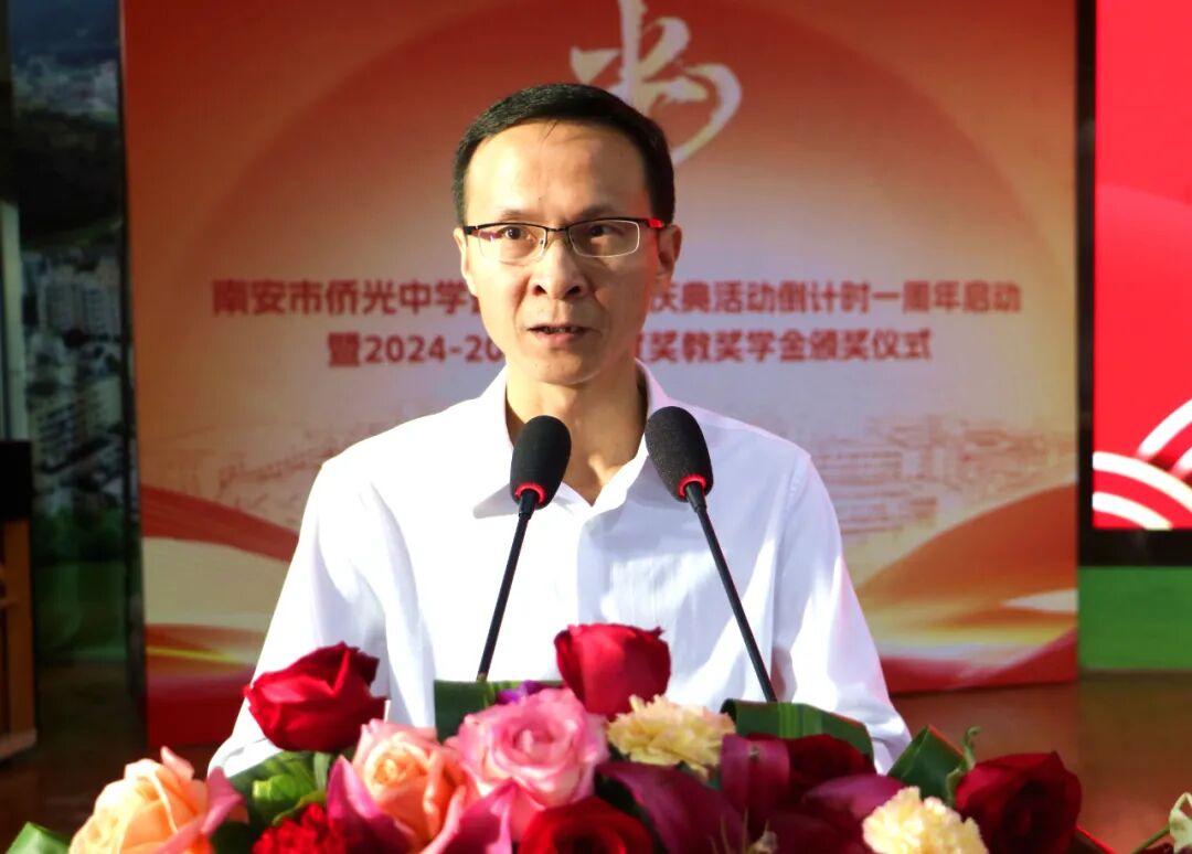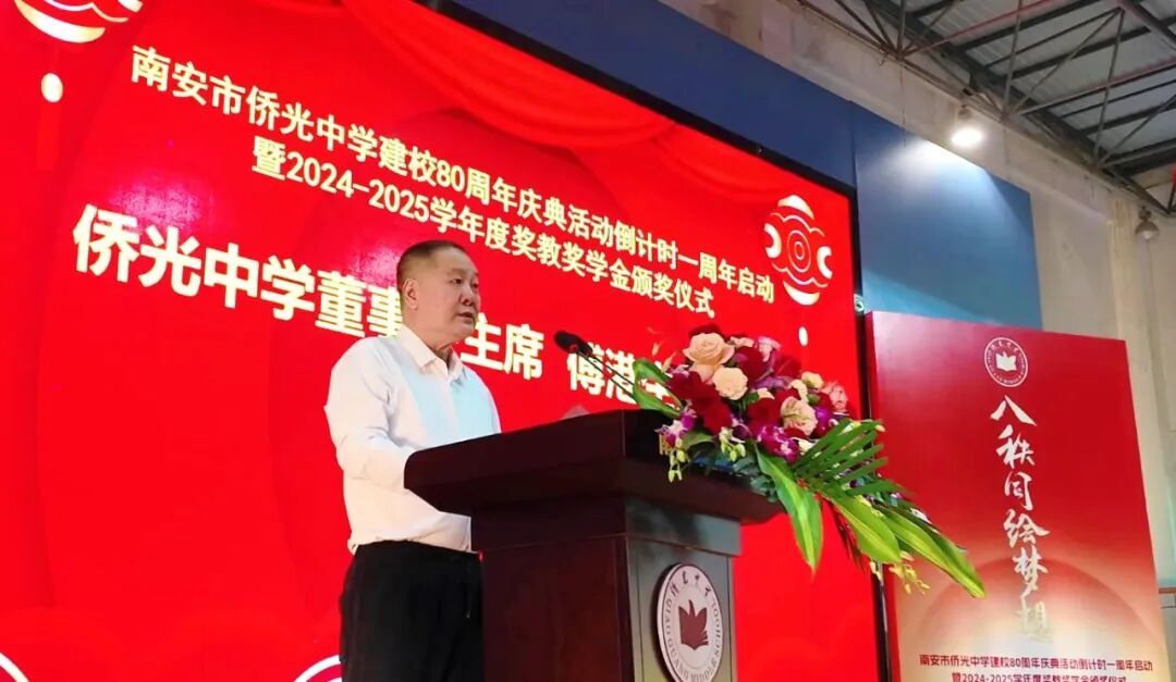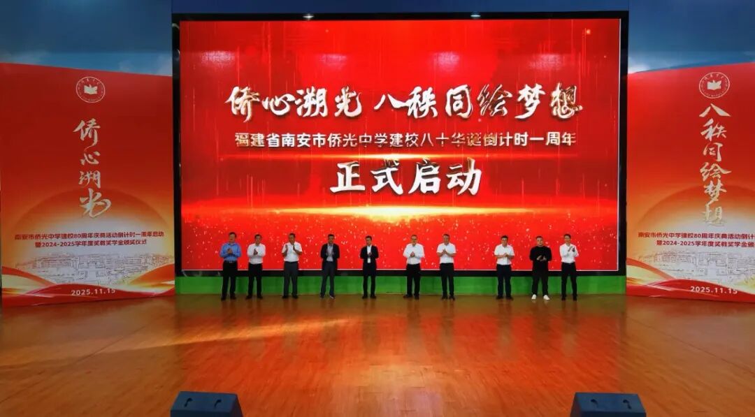 八秩侨光,薪火相传;群贤毕至,共绘梦想。11月15日下午,南安市侨光中学建校80周年庆典活动倒计时一周年启动暨2024-2025学年度奖教奖学金颁奖仪式在菲华体育馆隆重举行。 莅临大会的领导和嘉宾有:市领导蔡清安部长、侯强辉副市长和叶维新副主席,侨光中学董事会傅港生主席和叶抑强董事长,南安市委统战部黄文金常务副部长,金淘镇党委政府黄俊加书记和傅成顺镇长,南安市教育局林荣贵副局长,以及侨光中学董事会林仁初荣誉董事长、陈进宝常务副董事长、谢正建常务副董事长、谢培林理事长和副董事长陈明灿、林进通、贾琼娜、侯坤鸿等校董会董事,侨光中学教育发展基金会副理事长陈永怀、黄志源等基金会理事,各地校友会代表,金淘镇有关单位代表等。领导、嘉宾与侨光师生欢聚一堂,共同见证这一历史性时刻。 活动在庄严的国歌声中拉开序幕,全体与会人员肃立齐唱,铿锵旋律回荡在体育馆内,激荡着每个侨光人的爱国心、爱校情。 自2023年启动80周年校庆筹备工作以来,学校系统规划并有序推进了一批献礼工程。仪式上,林刚副书记代表学校汇报了校庆献礼项目的推进情况。仲咸楼已投入使用,校园中轴线景观全面提升,圆梦园厚植梦想教育文化,体育场地设施全面升级,田径场主席台正在紧锣密鼓施工中,学生宿舍项目立项工作提上日程。各个项目的扎实推进,为学校教育教学提供了更优美的环境和更优越的条件。 陈东红副校长现场宣读了《南安市侨光中学80周年校庆公告(第三号)》,向海内外校友和社会各界发出诚挚邀请,欢迎大家在2026年11月15日重返学校,共庆八十华诞。公告详细介绍了校庆筹备进展和系列活动安排,彰显了学校以八秩庆典为契机,凝聚各方力量,推动学校内涵发展和高质量发展的决心。 激动人心的校庆倒计时一周年启动仪式将活动推向高潮。林建成校长陪同市领导蔡清安部长、侯强辉副市长、叶维新副主席,金淘镇黄俊加书记,校董会傅港生主席、叶抑强董事长、陈进宝老校长、谢正建常务副董事长、谢培林理事长共同登台,将手掌按在启动屏上。随着全场齐声倒计时“5-4-3-2-1”,建校80周年庆典倒计时牌正式揭幕,标志着侨光中学正式迈上八秩庆典倒计时阶段。 教育的发展,离不开师生的共同努力与社会各界的鼎力支持。在随后举行的2024-2025学年度奖教奖学金颁奖暨“牡丹山教育守望者”荣誉牌匾颁发仪式上,陈良达副校长宣读了获奖名单。 值得一提的是,此次颁奖特别增设了“牡丹山教育守望者”荣誉称号,向担任班主任工作超过二十年的老师致以崇高敬意。 在热烈的掌声中,获奖学生代表和教师代表分批上台领奖,与会领导嘉宾为他们颁发了荣誉证书。这份沉甸甸的荣誉,不仅是对师生们过去一年努力的肯定,更是对侨光精神的传承与弘扬。 本次颁奖会由学校董事会及23个教育基金会(基金)联合授奖。资金来源:南安市侨光中学、侨光中学董事会、侨光中学傅港生基金会、侨光中学叶孙义教育基金会、南安市侨光中学教育发展基金会、南安市李德茂教育基金会、三叶集团教育基金、柏斯音乐集团教育基金、谢正建吴明霞教育基金、利亿集团教育基金、首航教育基金、三嘉乐教育基金、黄宝珠教育基金、林文宽教育基金、黄礼土陈丽华教育基金、林仁初教育基金、叶抑强谢娟娟教育基金、杨龙辉教育基金、宝树教师专业发展基金、挑战狼体育基金、仁华文学基金、万红奖教助学基金、海元科技教育基金、林春宗教育基金、黄志源教育基金。本次表彰发放的奖金及开展教育教学活动经费超过169万元,共有 756人次的师生获得表彰。 领导、嘉宾及获奖师生代表发言 侯强辉副市长代表南安市委市政府向慷慨捐资助学的热心侨亲、校友及社会各界人士致以崇高敬意。他希望学校以八秩校庆为契机,传承精神、守正创新,不断提升办学品质和育人水平,为南安教育事业作出更大贡献。 校董会傅港生主席在讲话中肯定了学校近五年来取得的优异成绩,希望全体师生增强主人翁意识、爱拼敢赢意识和敢为天下先意识,共创侨光新辉煌。他表示,校董会将一如既往地、不遗余力地支持母校办学,共创侨光新辉煌;全力支持校庆筹备工作,共同办好母校八十周年庆典盛事。同时,傅港生主席倡议广大侨亲、校友以及社会各界人士,继续关心、支持侨光的发展,为侨光中学乃至全市教育事业的发展贡献更大的力量。 校友总会候任会长陈进宝老校长深情回顾了在侨光工作40多年的岁月,呼吁海内外校友积极参与校庆筹备,共同铸就校史丰碑,汇聚校友力量,共助母校发展。 侨光中学教育发展基金会谢培林理事长介绍了基金会发展情况,目前已设立23个专项基金。他呼吁更多侨亲校友、各界贤达加入支持教育发展的行列,共同为母校发展注入新的活力。 林建成校长在致辞中真情表达了学校五年来取得的优异成绩来之不易,这其中凝聚了各级领导的关心指导、学校董事会这个坚强后盾的鼎力支持、广大侨亲校友及各界人士的热心参与和全校师生的务实拼搏。站在八十周年校庆这个历史节点,林校长表示,将认真回顾办学历程,总结办学经验,凝炼校园文化,科学擘画“十五五”发展规划,汇聚各方力量,以饱满的热情和辉煌的业绩,迎接建校八十华诞!同时,也恳请各级领导、侨亲校友、各界人士全力支持侨光中学建校八十周年筹备工