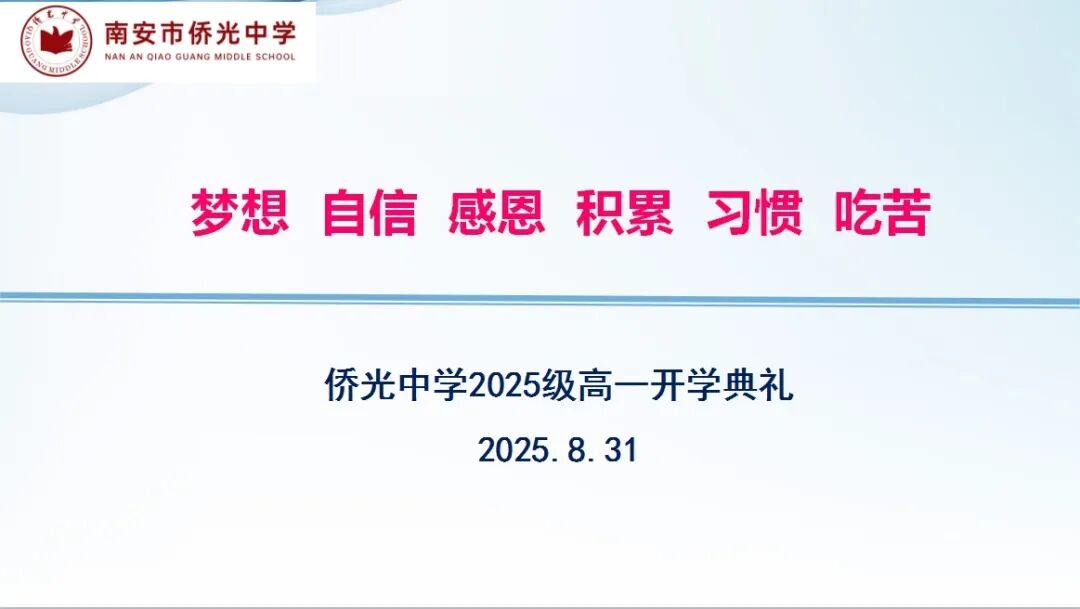 青春逐梦启新程,侨光聚力育英才——侨光中学举行2025级高一年新生开学典礼